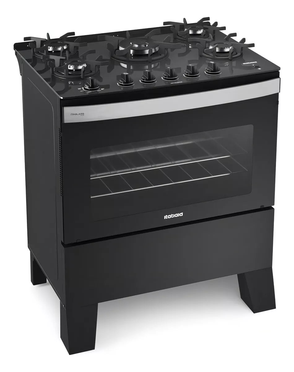 Fogão 5 Bocas Itaglass Plus da Itatiaia é perfeita para quem deseja combinar estilo, funcionalidade e desempenho. Com 5 queimadores/bocas, sendo 1 tripla chama, 2 médios e 2 pequenos, é capaz de atender a diversas necessidades culinárias. Seu acendimento automático garante praticidade e segurança, permitindo que os queimadores sejam acionados de forma rápida e fácil. Possui forno de 82 litros com luz interna, espaçoso e facilita o acompanhamento do cozimento, sem a necessidade de abrir a porta. Além disso, conta com controle integrado e indicadores de temperatura, trempes individuais em ferro fundido e com classificação energética A, garante eficiência e economia. Aproveite a qualidade que só a Itatiaia te oferece!