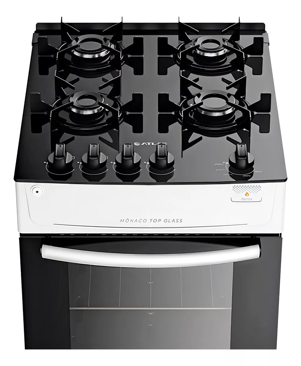 Fogão Atlas 4 Bocas Preto Atenas Glass Acendimento Automático Bivolt